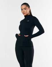 NANDEX™ fabric (made famous by our 'Best Black Tights' or 'leggings' for our international customers), STAX. NANDEX™ is the perfect combination of a buttery smooth, high-performance fabric that can support you through your work out and your everyday, stylish lifestyle. STAX. BB Zip Jacket is a high cut, full body fitted jacket with a full zip detail and attached athletic style hood.